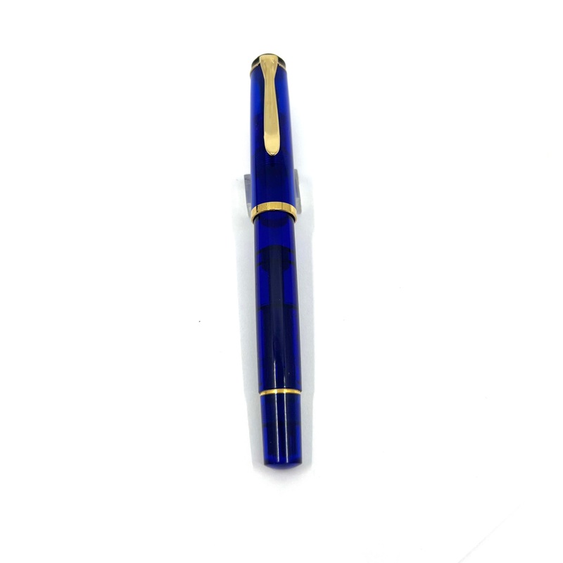 Pelikan M200 Cobalt Blue Transparent Fountain Pen - Gold-Plated Trim - Piston Fill - Circa 2003 - No Original Box - MINT - Italic Broad Gold-Plated Nib (Marked only "B"!) - $135