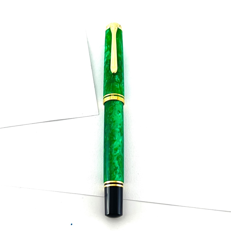 Pelikan M600 Vibrant Green Fountain Pen – Gold-Plated Trim – Piston Fill – Extra Fine 14kt Gold Nib – 2017 – Original Box- Mint – $365