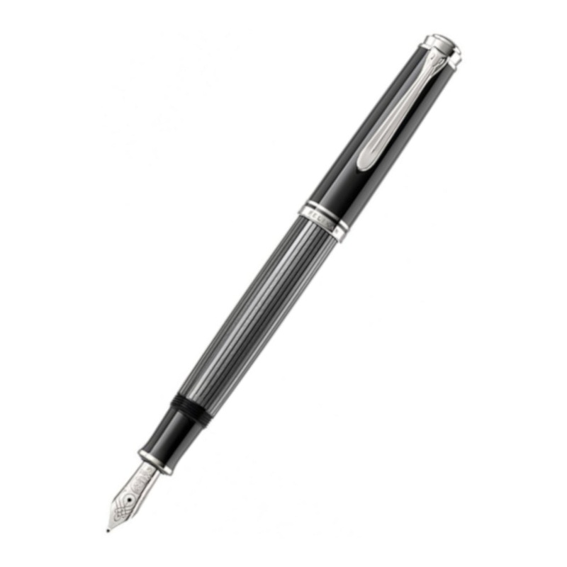 The M605 Streseman is a sophisticated black striped version of the Pelikan Souveran M600 medium sized fountain pen. The M600 is the mid version of the Souveran range and is apopular size, suitable for the average hand. It features are large 1.5ml different