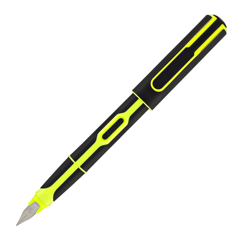 The Pelikan Style Fountain Pen in Neon Yellow stands out with its eye-catching neon yellow body, offering a bright, energetic addition to your writing tools. The combination of stainless steel and plastic materials provides a lightweight and durable construction, ensuring comfort for both right- and left-handed users.