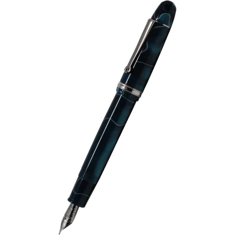 Extra Large size fountain pen is newly introduced widely in America now in Fine, Medium and Stub nib sizes. The nib features German Stainless Steel and the entire composition of the pen is crafted in high grade PMMA Resin in translucent blue swirl. The fountain pen accepts ink via piston filling mechanism that draws ink from ink bottle to refill it.