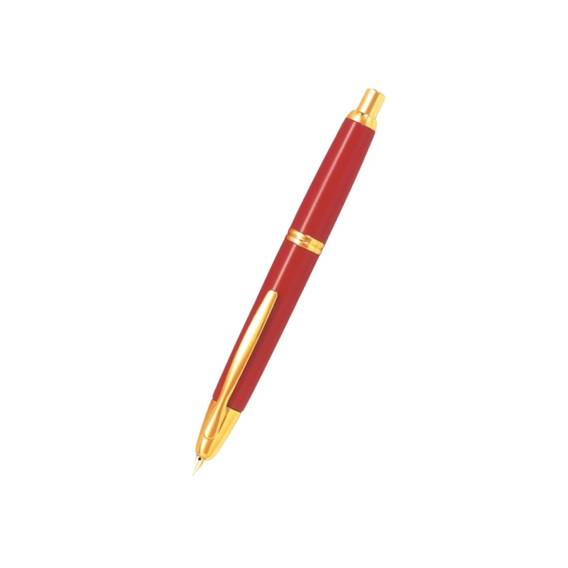 Pilot Capless Fountain Pen Red with Gold Trims (Fine & Medium Nib)Discover the convenience of a capless design paired with luxurious craftsmanship in the Pilot Capless Fountain Pen in Red with Gold Trims. With a simple click, the 18kt gold nibplated with r