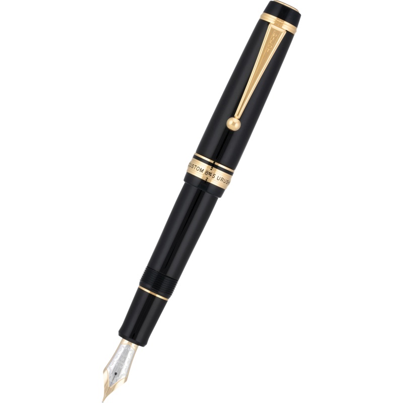 The Custom 845 is extremely popular worldwide because of its unique Urushi lacquer finish, two-toned 18-karat gold nib (size #15) and large barrel size. The Custom 845 is available in a Double Broad, Broad, Medium or Fine nib size with a CON-70 converter in a Black barrel finishes. These exceptional Custom fountain pens are packaged in an elegant gift box.