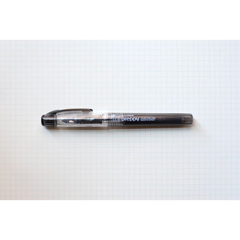 The Platinum Preppy fountain pen is one of the best values for the money! This is a fantastic starter fountain pen, or great for lending to a friend. This pen features a translucent black body, a clear cap, black trim, and a stainless steel nib. As a Japanese-made pen, the nib runs on the narrow side. The Preppy accepts proprietary Platinum ink cartridges (one black cartridge is included) or a Platinum converter (sold separately) to fill with bottled ink.