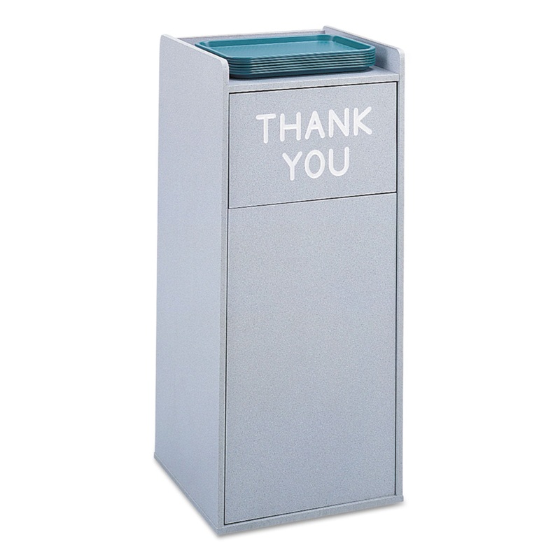 Constructed of high-grade 5/8″ compressed wood with melamine finish. Push door can be hung to display the words THANK YOU, or reversed for a neutral look. Recessed bottom with poly floor glides to protect floors. Accepts 36-Gallon Rigid Plastic Liner (SAF9669), sold separately.
