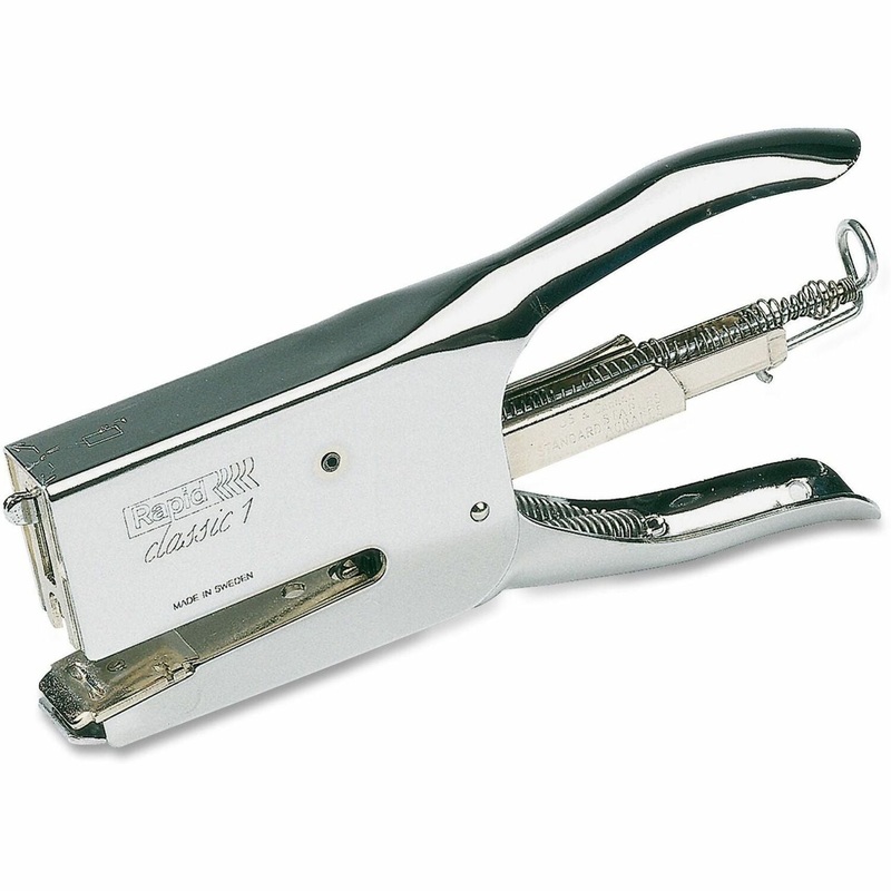 Made in Sweden, this sturdy stapler features an all-metal construction and staples up to 50 sheets. Ergonomic handle provides comfort. Adjustable anvil allows open and closed stapling. It is perfect for use in restaurants, mailrooms and more. This classic plier stapler is compatible with 1/4″ or 5/16″ staples.