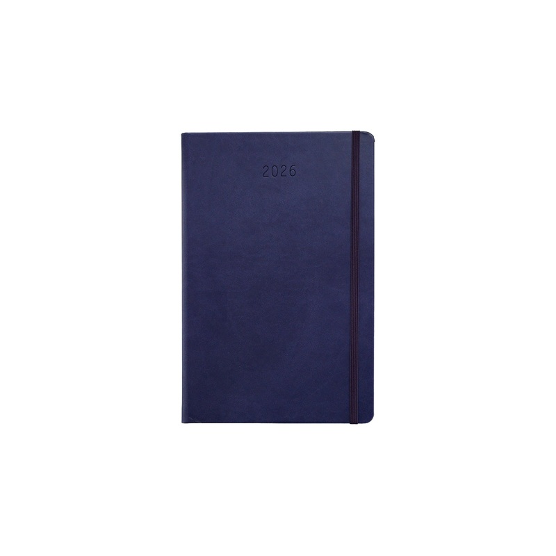 This oversized A5 notebook has a dark blue leatherette hard cover, elastic closure, and elegant round corners. The corners are microperforated so you can tear off completed weeks, making it easy to find where you left off.