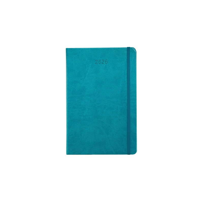This oversized A5 notebook has a peacock teal leatherette hard cover, elastic closure, and elegant round corners. The corners are microperforated so you can tear off completed weeks, making it easy to find where you left off.