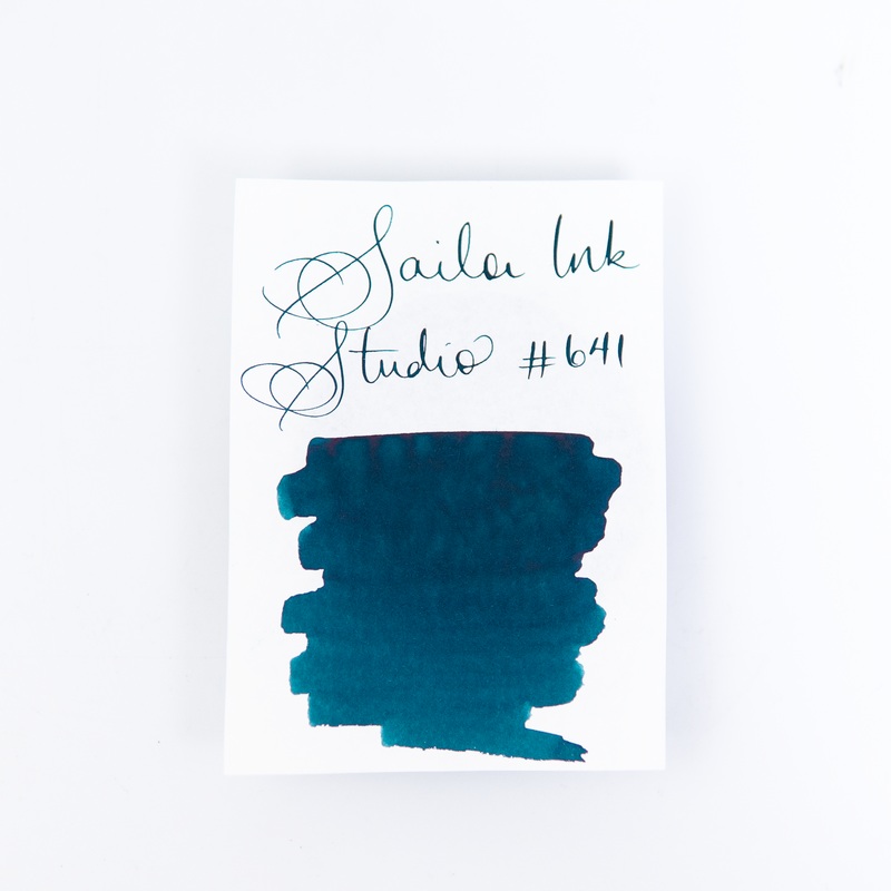 20ml square glass bottle of Sailor Ink Studio 641 turquoise fountain pen ink.A set of small stickers with the name of the ink are included for labeling your ink converter, so you can always remember what ink you're using.This smooth-flowing water-based dye
