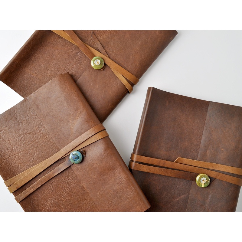 Our One of a kind Santa Fe leather photo album is the perfect home for your photo collection. Elegant, durable, and bound in soft and supple leather, the album features slip-in pockets for 4×6 photos as well as a flap and contrasting leather tie closure. The tie is attached to the album flap with a single rugged stone.