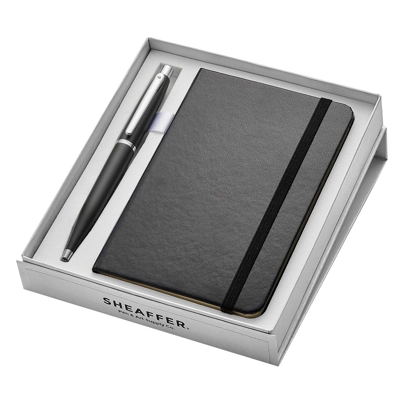 - Includes: Sheaffer VFM Matte Black Ballpoint Pen and A6 Black Notebook