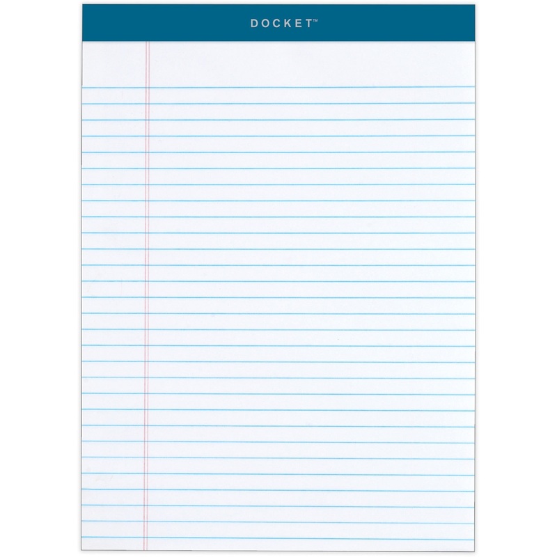 Writing pads feature Letr-Trim perforation at the top for a clean tear-out every time. Binding at the top is double-stitched for added strength. 60 point, rigid chipboard backer provides writing support and durability. Each pad contains 50 stitched sheets of heavyweight, 15 lb. paper that resists bleed-through. Each sheet is legal/wide-ruled with 11/32″ line spacings and a 1-1/4″ left margin.