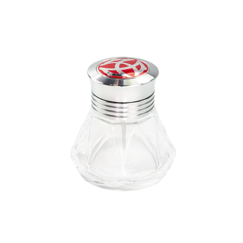 This glass inkwell from TWSBI has a polished raw anodized aluminum top. It has an ink capacity of approximately 50ml.