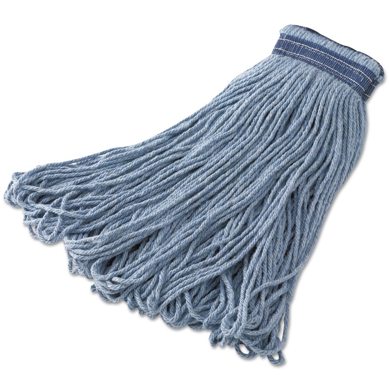 The Rubbermaid Commercial Universal Headband Blend Mop is made with looped ends to reduce fraying for better performance and launderability than cut-end floor mops. Constructed of post-industrial recycled cotton content and PET recycled plastic, the universal headband fits both side-loading and clamp-style mop handles. This mop is suitable for use in commercial and industrial applications and can be laundered up to 50 times.