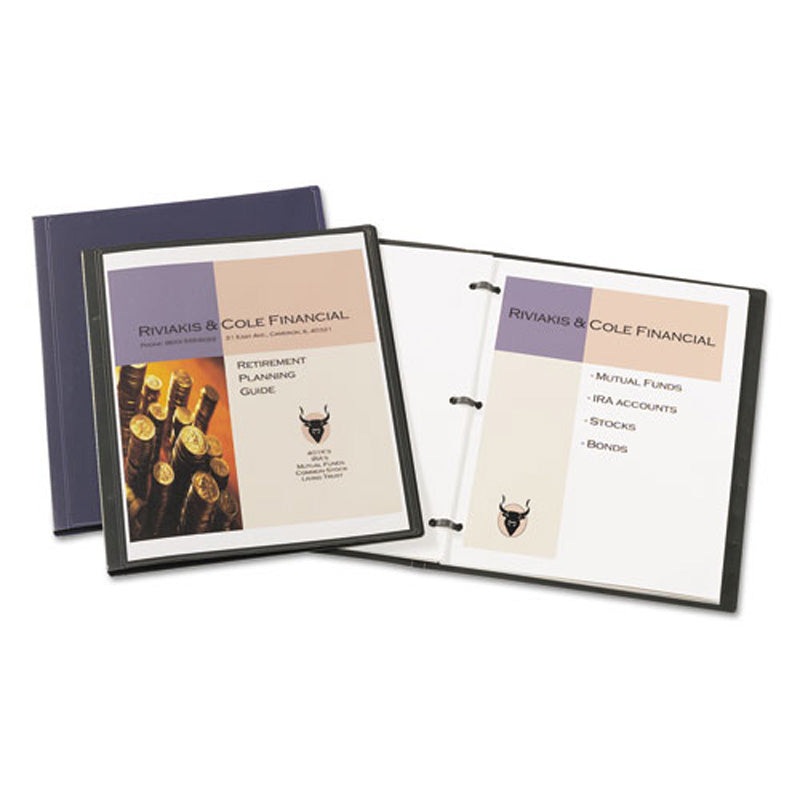 Clear front for custom title page. Durable Polypropylene material won’t lift print. Plastic 3-prong fasteners hold pages securely in place.