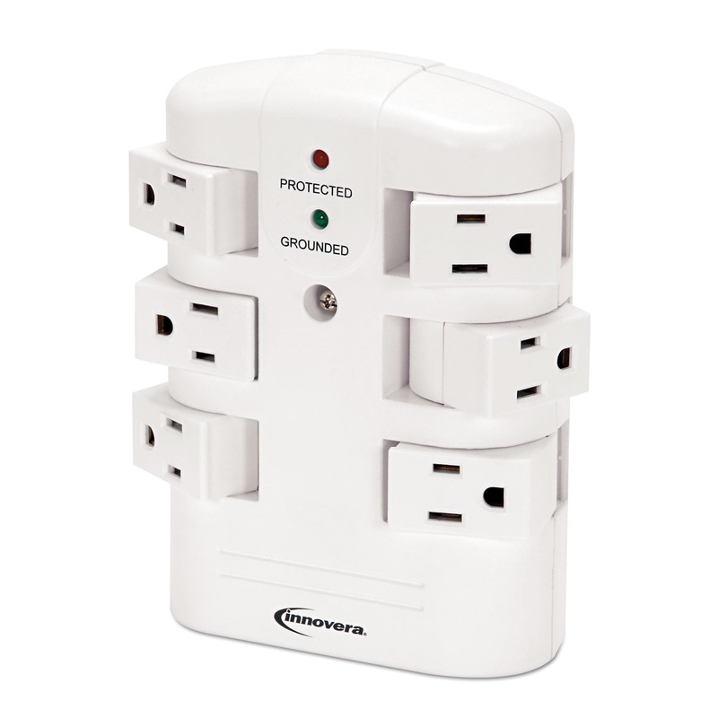 Keep your electronics safe from power surges with this wall-mount surge protector. Six swivel outlets are easy to access. MOV surge mechanism is fire-resistant to provide additional protection in the event of an extreme surge. Wall mount design saves valuable floor space.